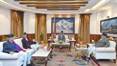 राजनिति  राष्ट्रपति प्रचण्ड, ओली र देउवा बीच शीतलनिवासमा छलफलकाठमाडौं: राष्ट्रपति प्रचण्ड, ओली र देउवा बीच शीतलनिवासमा छलफल जारी छ। राष्ट्रपति रामचन्द्र पौडेलले प्रधानमन्त्रीसहित प्रमुख तीन दलका शीर्ष नेतालाई… Read More »